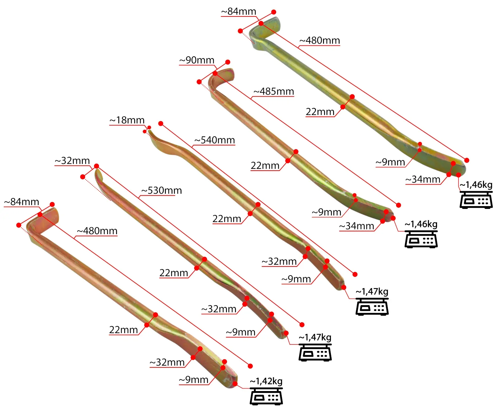 Łyżki można stosować do precyzyjnego wyginania blachy w określonych miejscach, tworząc zagięcia o pożądanych kątach i wymiarach. Dzięki odpowiednio dobranemu kształtowi i długości łyżki, można kontrolować proces zginania, zapewniając dokładność i powtarzalność operacji.